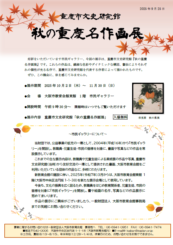 「重慶市文史研究館 秋の重慶名作画展 (2025年10月2日~11月30日)」を掲載しました