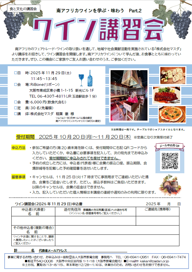 「南アフリカワインを学ぶ・味わう Part.2 ワイン講習会(2025年11月29日)」を掲載しました